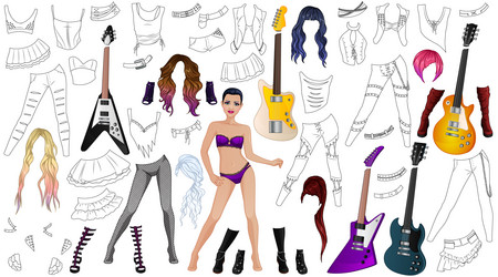 Rockstar Coloring Page Paper Doll Royalty Free Vector Image