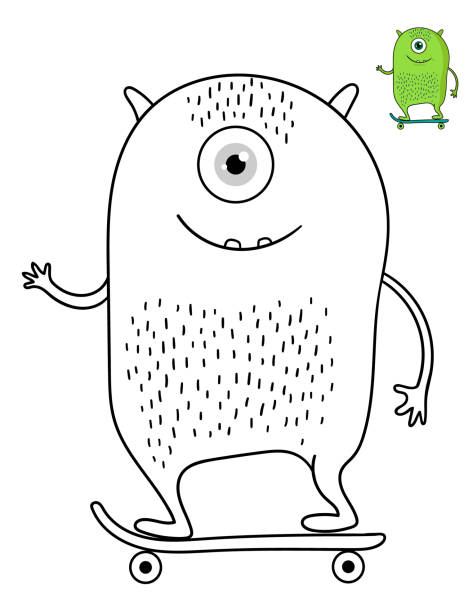 Cute Cartoon Monster Coloring Page And Color Sample Ready To Print Letter Size Stock Illustration Download Image Now Istock